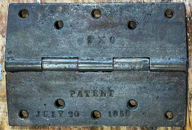 Back-“PATENT JULY 20, 1858”, Balcony Door Hinge
