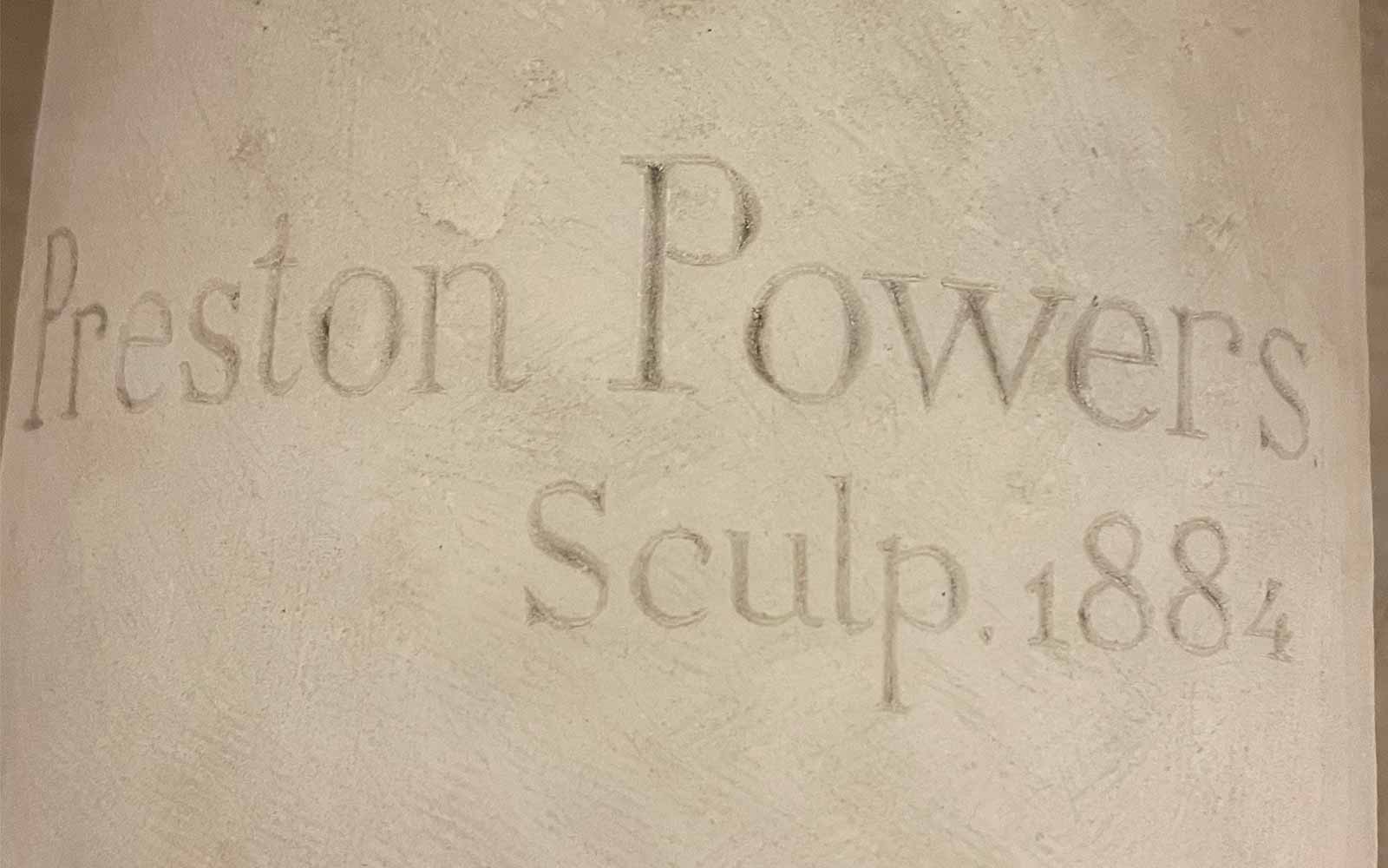 Verso Base, inscribed: “Preston Powers / Sculp. 1884”, Bust of Charles Aiken (1884) by Preston Powers, Cincinnati Music Hall.